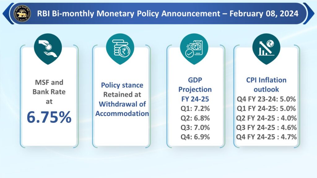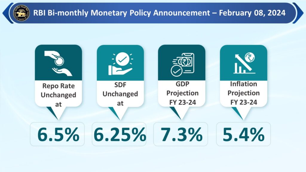 RBI Governor Shakti Kant Das ने आज MPC बैठक के नतीजों का ऐलान करते हुए कहा कि रेपो रेट को 6.5 प्रतिशत पर बरकरार रखा गया । आपके होम लोन की EMI में कोई बदलाव नहीं होगा। ब्याज का बोझ अभी अपरिवर्तित रहेगा।